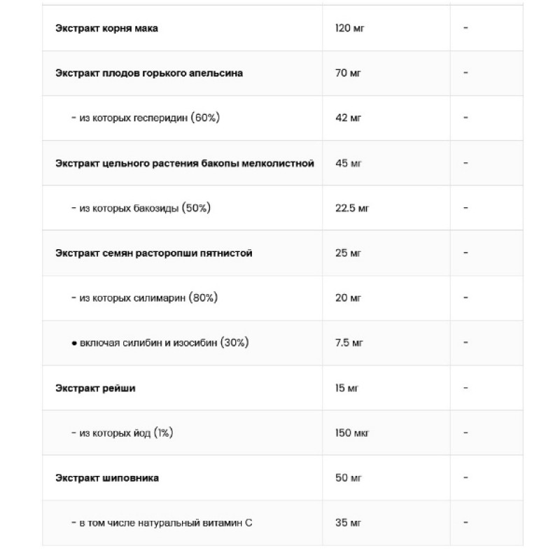 Препарат также содержит пробиотики и ценные ферменты, а также является источником витаминов и минералов - продукт обеспечивает организм такими соединениями, как витамины ADEK, витамин С или витамины группы В, а также минералы, такие как цинк, медь, магний или железо. Таким образом, препарат являет собой комплексный набор ингредиентов, которые имеют разностороннее действие и являются полноценным дополнением к ежедневному рациону.