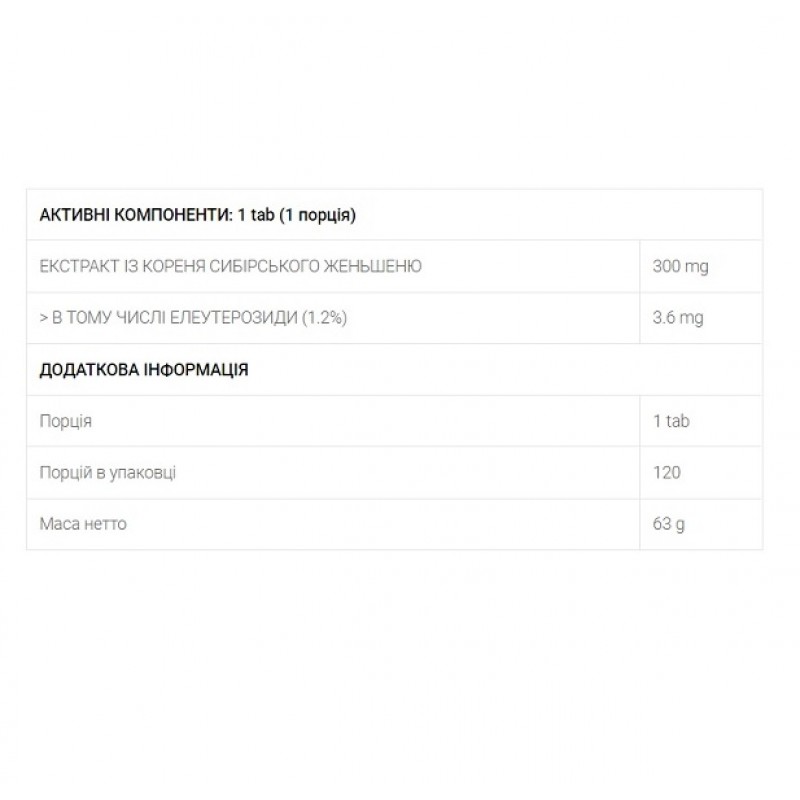 · 300 мг экстракта очищенного корня сибирского женьшеня;