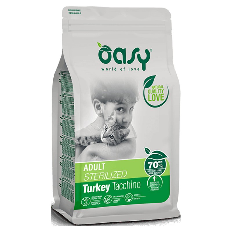 Благодаря повышенному содержанию клетчатки (по сравнению с Oasy Adult Chicken) кот чувствует себя сытым, что помогает контролировать чувство голода между приемами пищи.