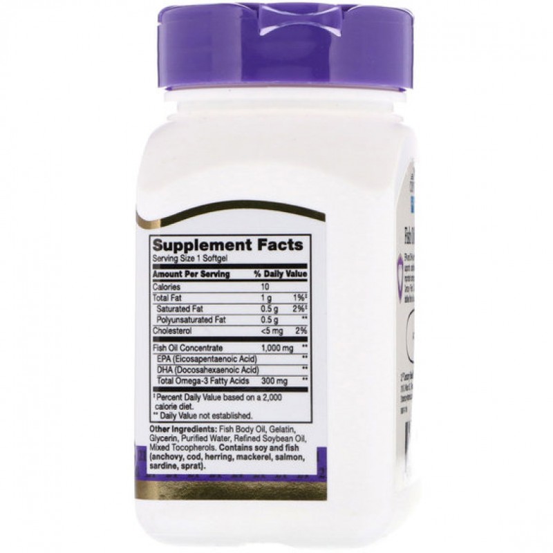 EPA и DHA являются важными омега-3 жирными кислотами, которые поддерживают здоровье сердечно-сосудистой системы, а также являются важными компонентами клеток в организме. Рыбий жир 21-го века содержит высококачественный молекулярно-дистиллированный концентрат рыбьего жира.