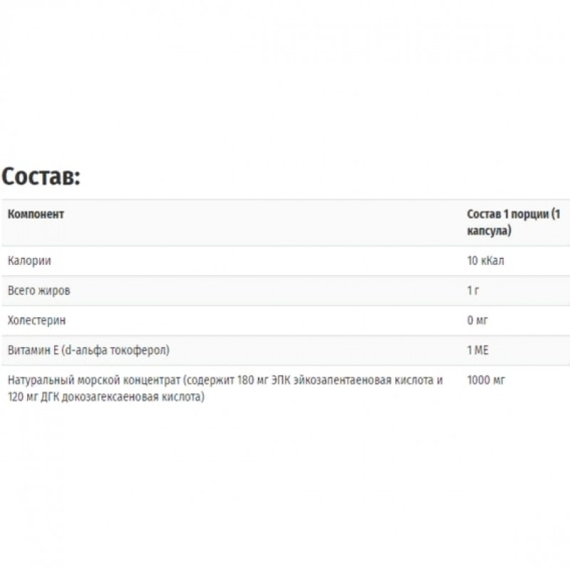 Омега-3 (Omega 3 Fish 180/120) - пищевая добавка с содержанием в одной порции 1000 мг Омега-3 жирных кислот, в том числе 180 мг ЭПК и 120 мг ДГК.