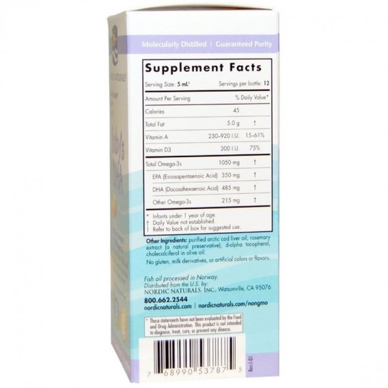 Докозагексаеновая кислота (ДГК) Oмега-3 из 100% дикой арктической трески способствует развитию мозга и зрения малышей. Включает в себя измерительную пипетку для удобного приема. Детскую ДГК можно легко добавлять в смесь для малышей или пищу.