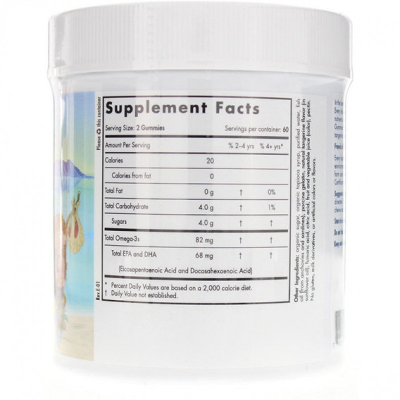 Рыбий жир для детей со вкусом мандарина (Omega-3 Gummies) обеспечивают детям необходимые омега-3 жирные кислоты для оптимального здоровья. Каждая чистая и вкусная жевательная конфета содержит 41 мг омега-3 кислот ЭПК+ДГК.