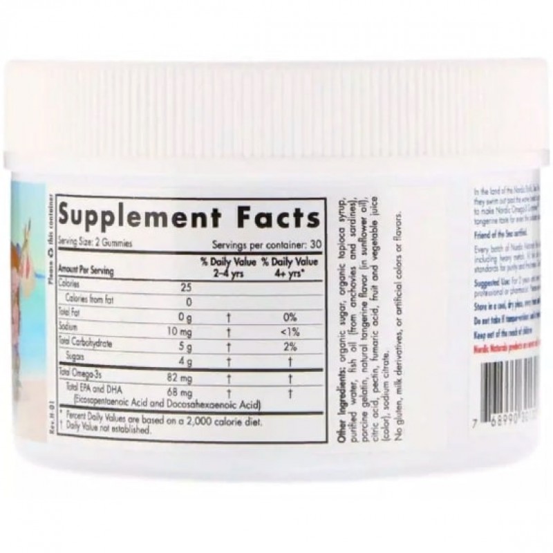 Органический сахар, органический сироп тапиоки, очищенная вода, рыбий жир (из анчоусов и сардин), свиной желатин, натуральный ароматизатор со вкусом мандарина (в подсолнечном масле), лимонная кислота, пектин, фумаровая кислота, овощные и фруктовые соки (для цвета), цитрат натрия.