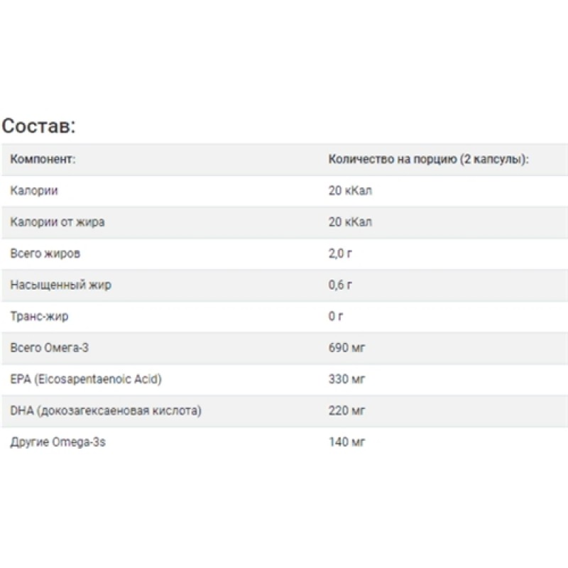 - Другие Omega-3s: 140 мг