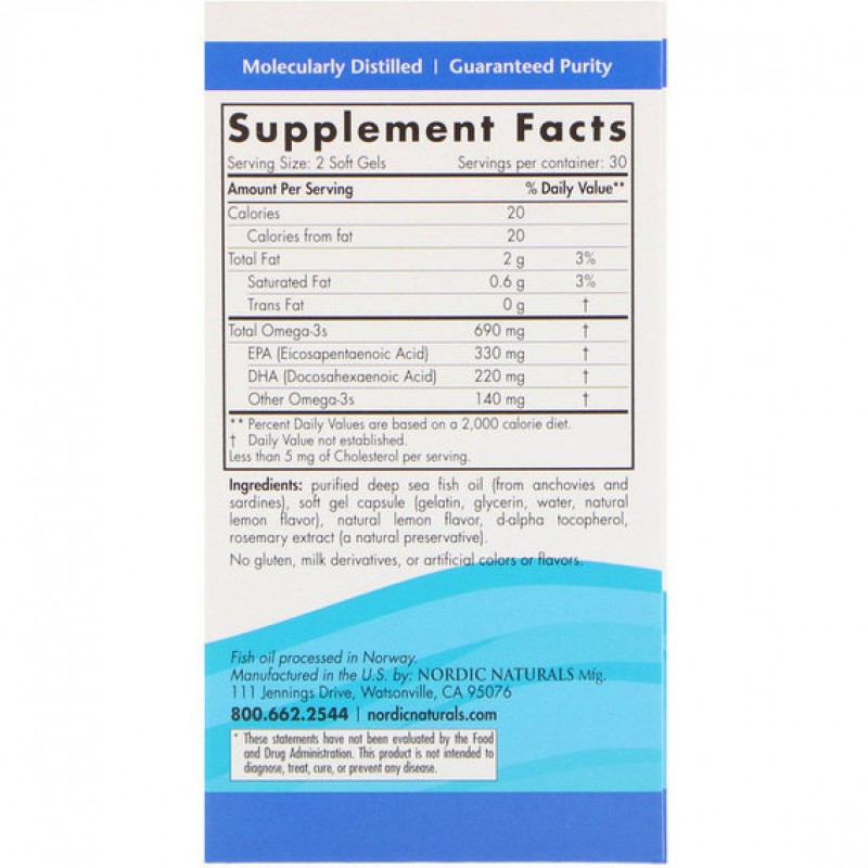 Очищенный рыбий жир (Omega-3) со вкусом лимона - идеальная формула для поддержания потребления омега-3 на нужном уровне для вегетарианцев и людей, придерживающихся строгой диеты.