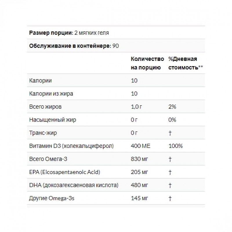- 830 мг омега-3 + 400 МЕ Витамин D3