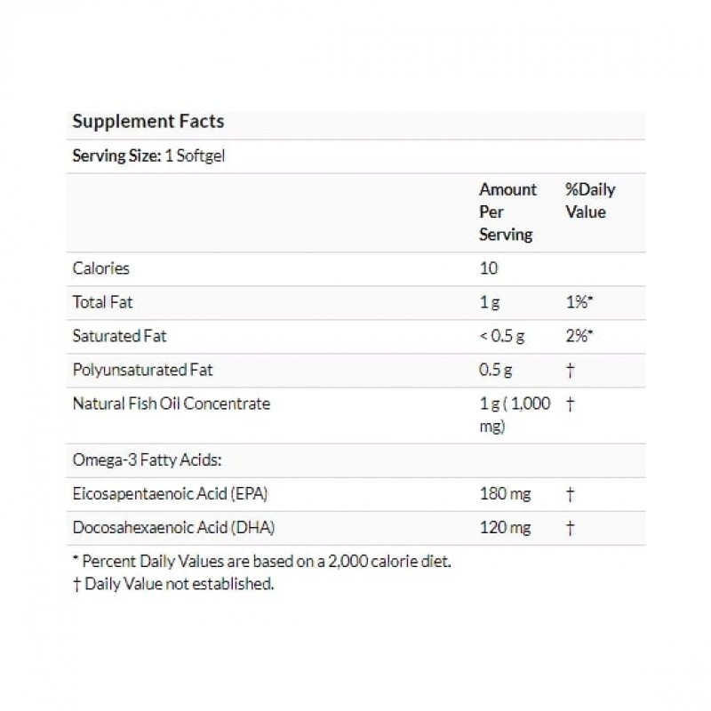 Концентрат натурального рыбьего жира производится в соответствии со строгими стандартами контроля качества. Он проверен на отсутствие содержания примесей потенциально вредного уровня, таких как ПХБ, диоксины, ртуть и другие тяжелые металлы. Тем, у кого другие препараты рыбьего жира вызывают тошноту или рефлюкс, эти мягкие кишечнорастворимые капсулы должны переноситься легче.
