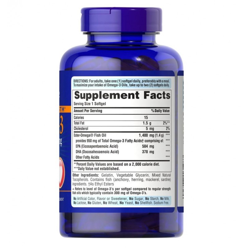 Puritan's Pride Triple Strength Omega-3 Fish Oil 1400 mg (950 мг активного омега-3) 120 Softgels PTP-16128