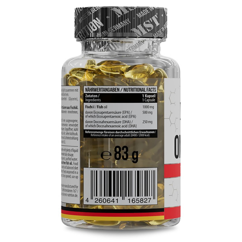 - Высокая доза омега-3 жиров, содержание EPA и DHA в 1 капсуле достигает 750 мг (EPA 500 мг + DHA 250 мг), что позволяет эффективно восполнять недостаток Омега-3 в организме человека (необходим минимум – 250-500 мг/день).