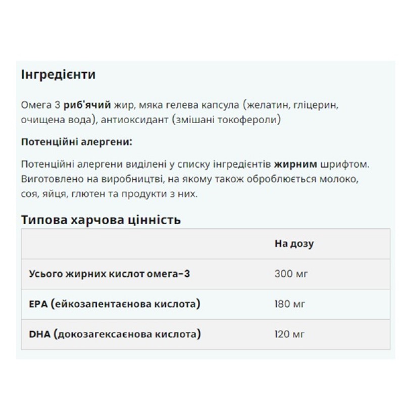 - Рыбий жир 300 мг