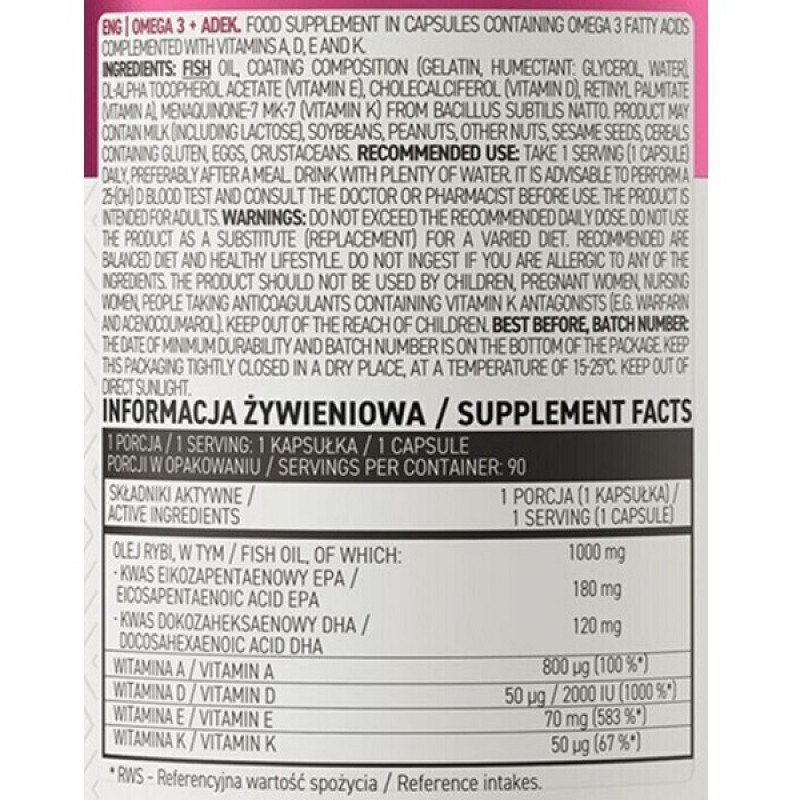 При регулярном приеме с соблюдением рекомендаций производителя пищевая добавка Omega 3 + ADEK от Ostrovit: