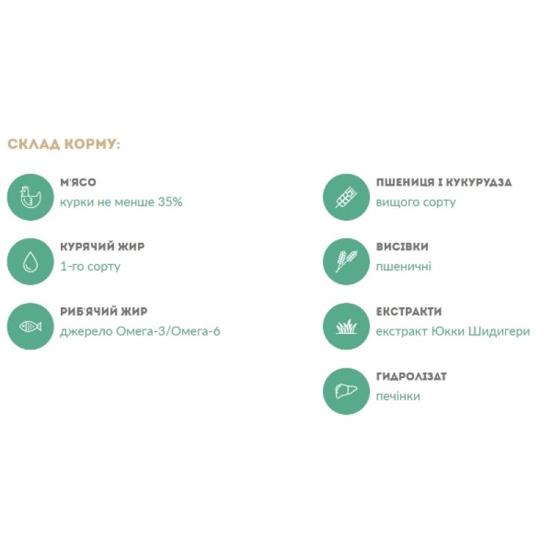 Сбалансированный состав учитывает физические потребности животного. Корм подходит для повседневного употребления.