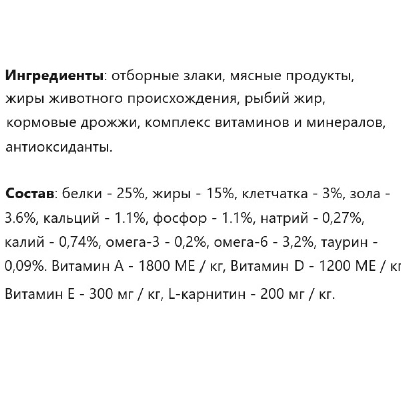 Прекрасно удовлетворит потребности в белках, жирных кислотах, пищевых волокнах, витаминах и минералах, сохраняя прекрасную физическую форму кошки. Специально разработанная формула для кошек с умеренной активностью, преимущественно живущих в помещении.