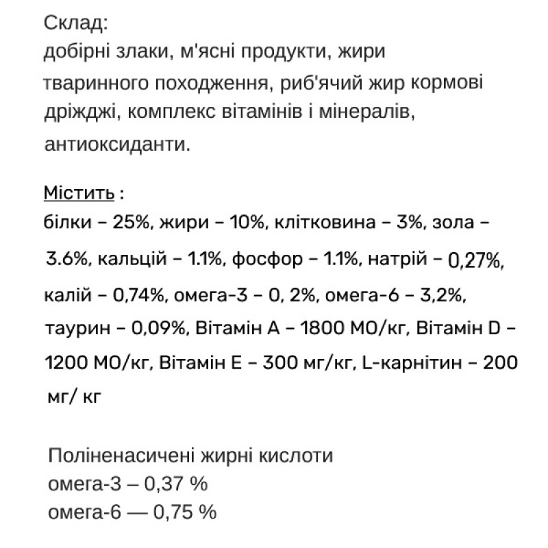 Рыба - наибольшие лакомства для дорогой кисы. Именно поэтому сухой корм "Рыба" торговой марки "Господин Кит" является особенно привлекательным и питательным. Результатом тщательным образом разработанной рецептуры на основе рыбы - есть высокие вкусовые свойства корма, сбалансированное содержимое рыбьего жира и необходимых жирных кислот, таких как омега- 3 и омега- 6. Кожа вашего любимца будет здоровой, а шерсть - блестящей.