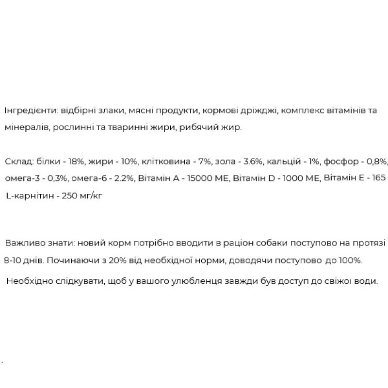 - Отборные злаки высшего сорта - пшеница и кукуруза является залогом улучшенного пищеварения, профилактикой метеоризма, формирование малого количества и оптимальной консистенции стулу.