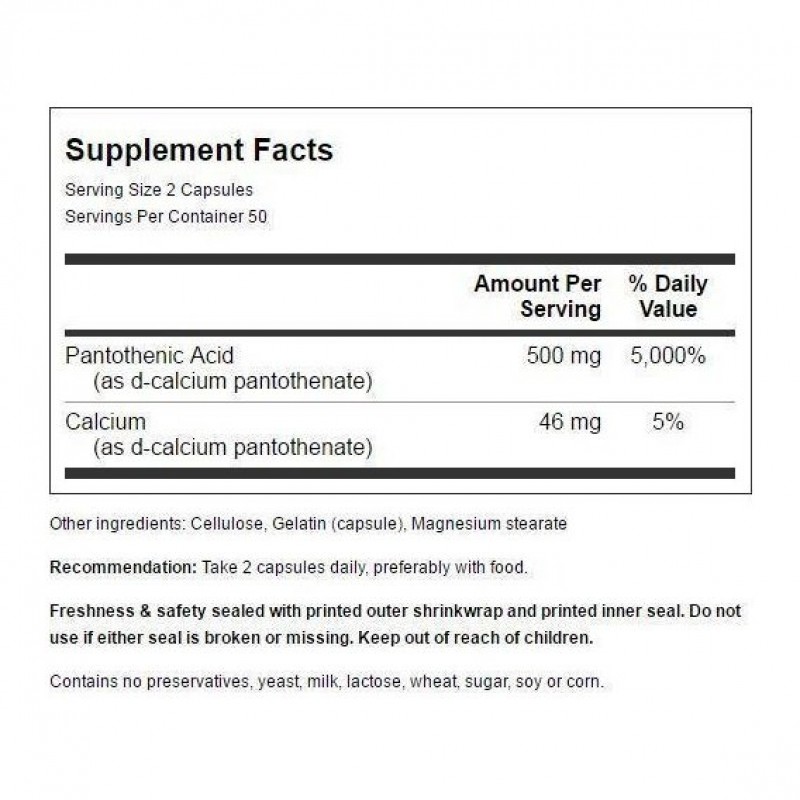 Пантотеновая кислота (Pantothenic acid) - основной антистрессовый витамин поддержка надпочечников, витамин для красоты для волос, ногтей и кожи, витамин стройности. Этот витамин помогает поддерживать тело в атлетической форме. Вегетарианский, кошерный продукт.