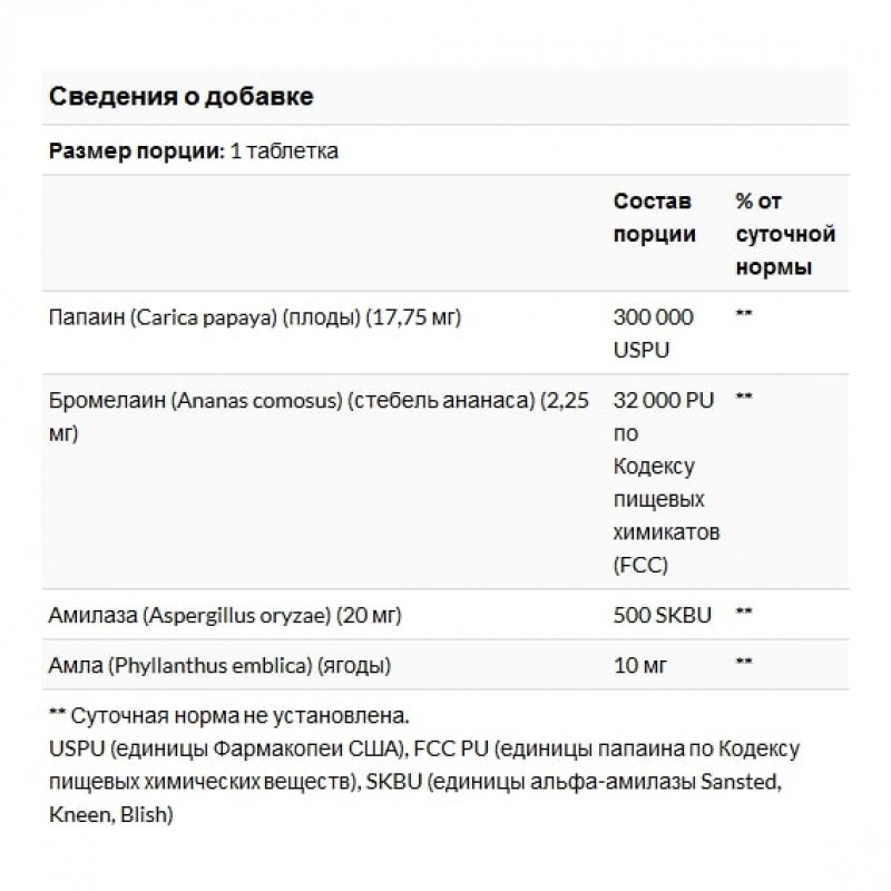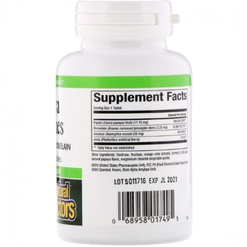 Жевательные таблетки с ферментами папайи — вкусный источник полезных ферментов для поддержки пищеварения. Папаин и бромелайн расщепляют белки на составляющие их аминокислоты. Амилаза расщепляет углеводы. Амла (крыжовник) поддерживает ферментативную активность. Натуральные добавки — отличный способ восполнить недостаток ферментов, которые разрушаются во время приготовления и обработки продуктов.