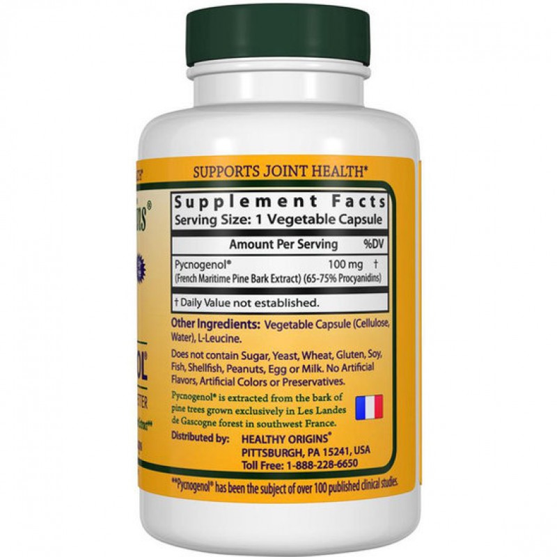 Пикногенол - это эффективный природный антиоксидант (из коры французской приморской сосны). Пикногенол - это самый сильный из известных антиоксидантов. Он предотвращает преждевременное старение и многие болезни. Пикногенол укрепляет кровеносные сосуды, подавляет воспалительные процессы, повышает подвижность суставов, улучшает зрение. Является одним из наиболее эффективных природных средств при заболеваниях вен (варикоз, тромбофлебит), при отёках и ночных судорогах нижних конечностей. Пикногенол полезен для профилактики сердечно-сосудистых и онкологических заболеваний.