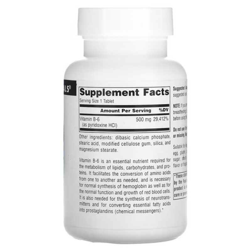 Витамин B-6 – это незаменимое питательное вещество, участвующее в метаболизме липидов, углеводов и протеинов. Он облегчает преобразование аминокислот в другие аминокислоты и необходим для нормального синтеза гемоглобина и роста красных кровяных клеток. Этот витамин также требуется для синтеза нейротрансмиттеров и конверсии незаменимых жирных аминокислот в простагландины (химические передатчики). Данный продукт обеспечивает постепенное высвобождение витамина В-6 в течение длительного времени для повышения абсорбции и усвоения.