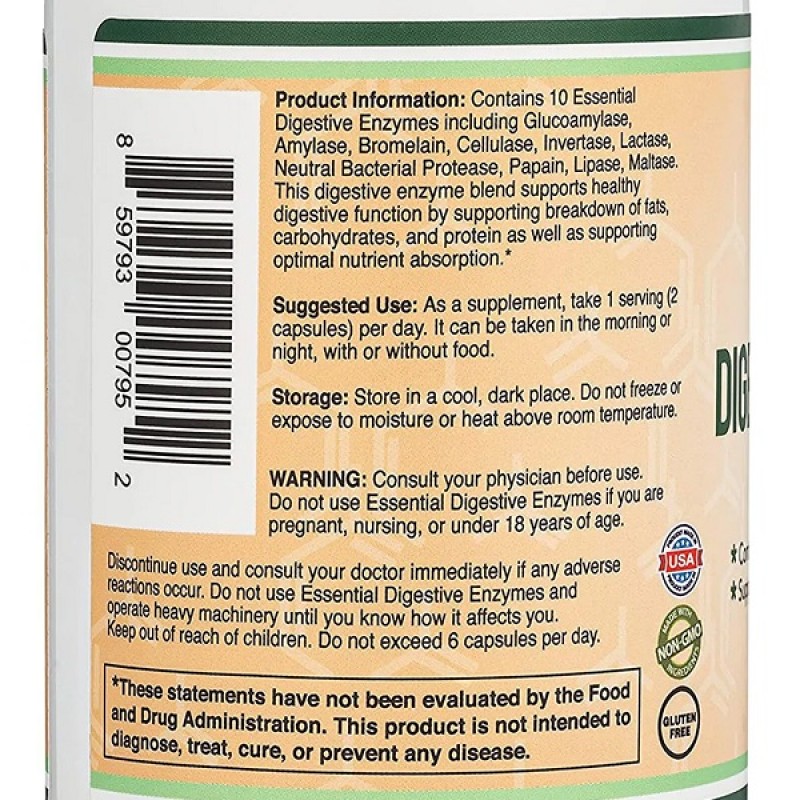 Никакая другая смесь пищеварительных ферментов не содержит все 10 наиболее важных пищеварительных ферментов, включая амилазу, липазу, бромелайн, лактазу, папаин, протеазу, целлюлазу, мальтазу, инвертазу и глюкоамилазу.