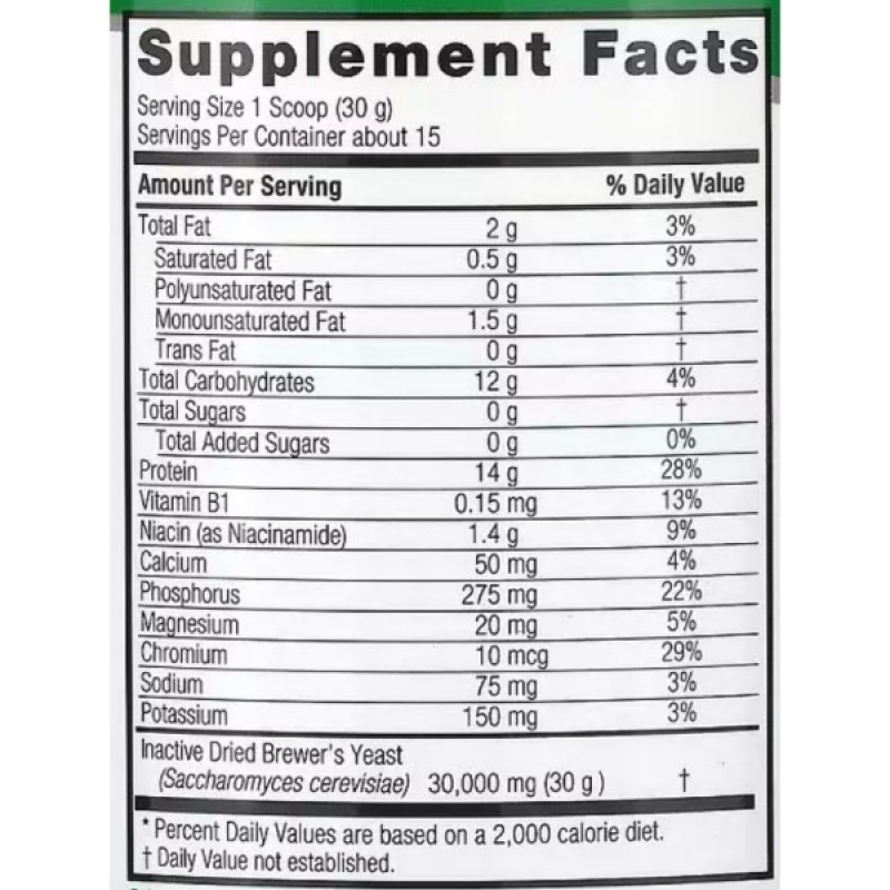 Пивные дрожжи содержат большое количество витаминов и минералов. Особенно много в их составе витаминов группы В: фолиевая и патотеновая кислоты, ниацин, рибофлавин и теанин. Кроме того, пивные дрожжи имеют в своем составе ряд аминокислот и бета-глюканы.