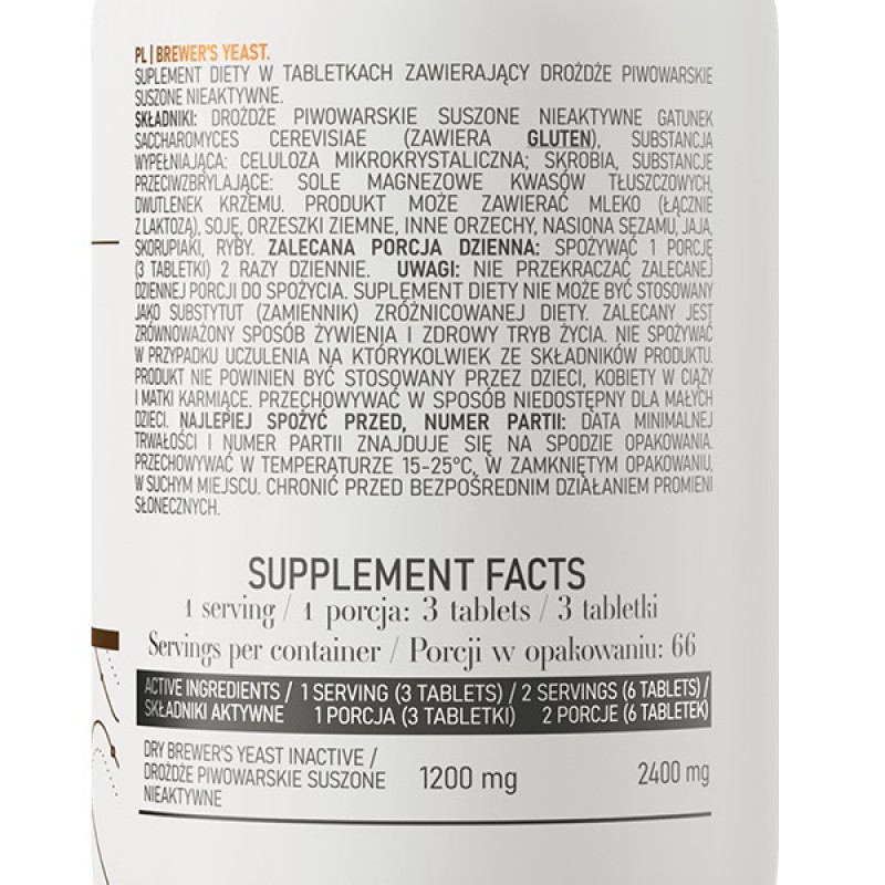 Полезная и удобная в использовании одновременно, пищевая добавка OstroVit Brewer's Yeast содержит комплекс витаминов группы В, железо, фосфор и много других, необходимых нашему организму минералов.