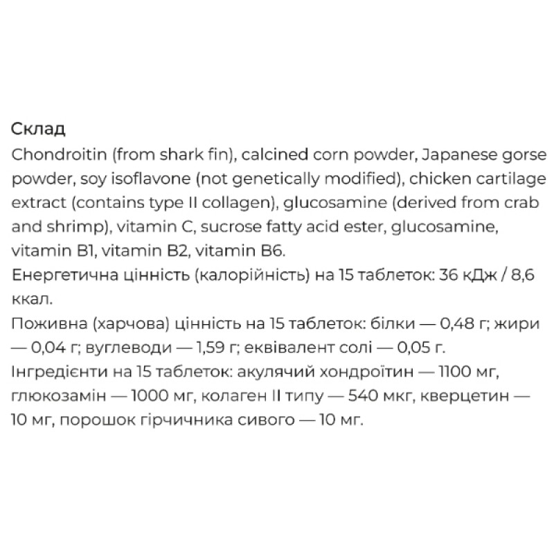 Поддержка суставов: Глюкозамин и акулий хондроитин являются ключевыми компонентами, способствующими укреплению и восстановлению суставов, обеспечивая им необходимую эластичность и гибкость.