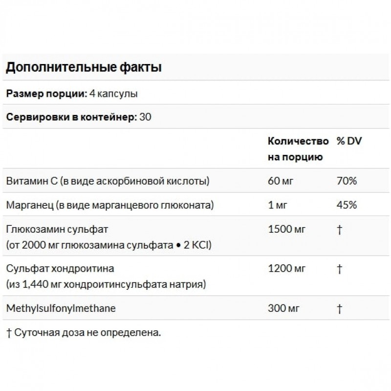 Глюкозамин и сульфат хондротина являются базовыми компонентами суставной ткани и участвуют в выработке гиалуроновой кислоты, которая, в свою очередь, является важным компонентом синовиальной жидкости, смазывающей суставы, а также служит основным компонентом соединительной ткани в коже.