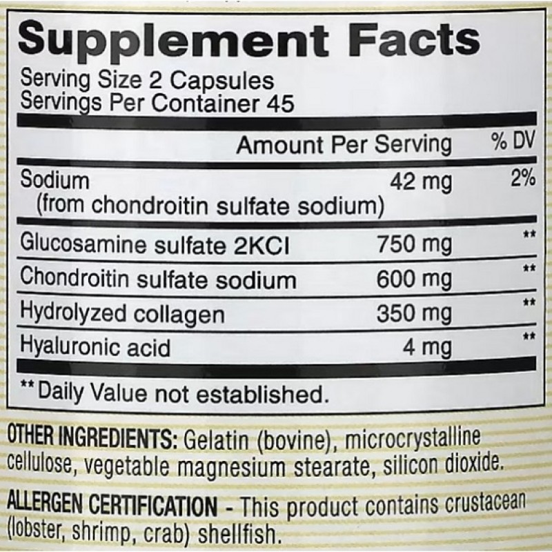 Mason Natural Glucosamine Chondroitin With Collagen & Hyaluronic Acid - это пищевая добавка, которая содержит глюкозамин, хондроитин, коллаген и гиалуроновую кислоту. Эти вещества важны для здоровья суставов, они помогают поддерживать их подвижность, гибкость и уменьшать боль.