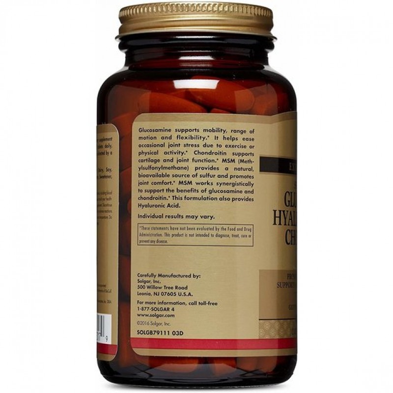 Глюкозамин обеспечивает подвижность, диапазон движений и гибкость. Он помогает снизить эпизодической стресс для суставов, возникающий из-за занятий спортом или физической активности. Хондроитин поддерживает работу хрящей и суставов. МСМ (метилсульфонилметан) представляет собой натуральный и биодоступный источник серы и сохраняет подвижность суставов. МСМ создает эффект синергии, усиливая действие глюкозамина и хондроитина. Кроме того, данный препарат содержит гиалуроновую кислоту.