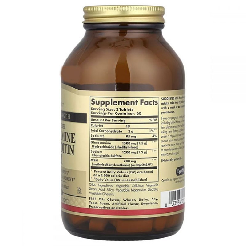 Глюкозамин Хондроитин МСМ тройная сила (Glucosamine Chondroitin MSM Triple Strength), Solgar применяется для профилактики и лечения заболеваний хрящевой ткани разной локализации. Препарат стимулирует и восстанавливает костную систему, оказывает противовоспалительное и хондропротекторное действие. Без моллюсков.