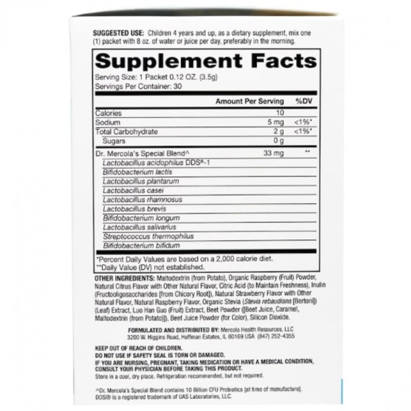 Детям от 4 лет принимать в качестве пищевой добавки один (1) пакет, размешанный в 240 мл воды или сока в день, предпочтительно утром.