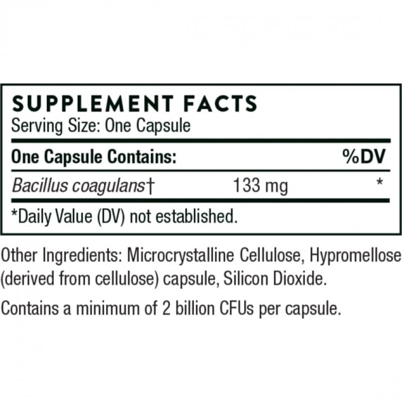 Кишечный тракт содержит триллионы бактерий, которые, когда человек здоров, сосуществуют с нами в выгодных, симбиотических отношениях. Полезные бактерии помогают переваривать пищу, вырабатывать витамины, регулировать обмен веществ и способствовать нормальному иммунному ответу. Пробиотические бактерии способствуют здоровой кишечной среде, продуцируя молочную кислоту и выделяя жирные кислоты, которые помогают росту других полезных микроорганизмов. Bacillus coagulans (также известный как Lactobacillus sporogenes) - это молочнокислые бактерии, которые уникальны для пробиотических добавок. Хотя эта полезная бактерия неактивна в бутылке, она превращается в растущие бактерии в кишечнике. В результате она сопротивляется гибели желудочной кислоты.