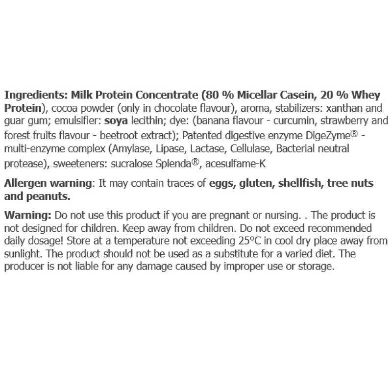 Micellar Casein Amix — это рафинированная белковая добавка, которая обеспечит вас полезным долгоусвояемым белком с превосходным вкусом. Добавка обогащена смесью пищеварительных ферментов DigeZyme® Multi- Enzyme Complex. Эта запатентованная смесь содержит 5 наиболее важных пищеварительных ферментов (целлюлазу, лактазу, липазу, протеазу и α-амилазу). Это обеспечивает еще лучшее усвоение белков и казеина. Это напрямую приводит к лучшему усвоению питательных веществ организмом, благодаря чему вы улучшите свое здоровье и результаты тренировок.