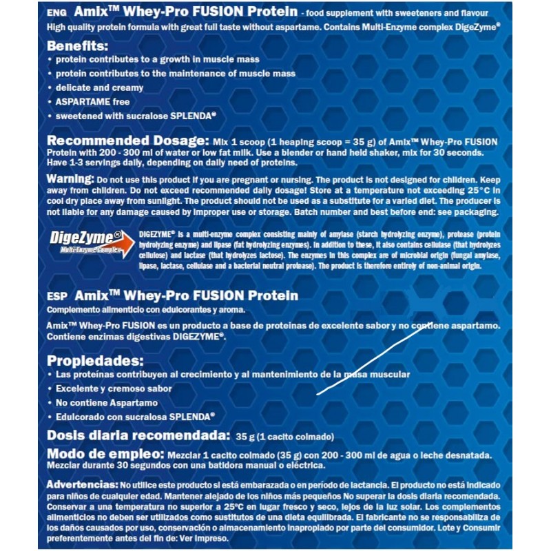 Whey Pure Fusion это высококачественный протеин с деликатным вкусом, не содержащий аспартам. Продукт содержит 75% чистых белков, из охлажденного сывороточного концентрата (WPC) и сывороточного изолята (WPI) изготовленных методом CFM - Cross-Flow Microfiltration. Whey Pure Fusion отлично и быстро переваривается благодаря комплексу ферментов DigeZyme®. Сывороточные белки быстро и легко усваиваются в организме и имеют естественное высокое содержание разветвленных аминокислот ВСАА и L-глютамина. Благодаря этому Whey Pure Fusion способен быстро остановить катаболические процессы в организме. Продукт поддерживает быстрый рост и регенерацию мышц при усиленных тренировках.
