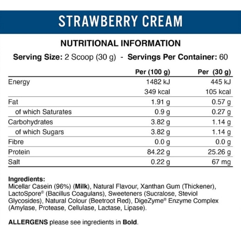 Высокое качество белка: Сделан с использованием чистого изолированного казеина, что обеспечивает высокое качество белка для максимальной поддержки мышц.