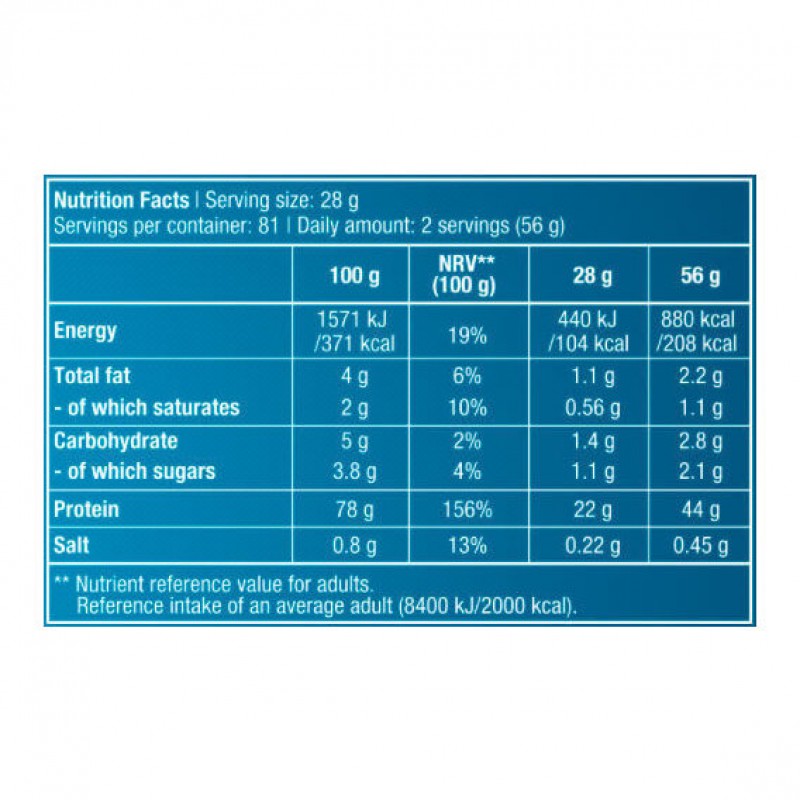 Активизирует метаболический процесс и регулирует жировой и протеиновый обмен. Снижает риск спортивного травматизма и поддерживает здоровье опорно-двигательного аппарата. Облегчает восстановление после пиков физической активности. Полностью усваивается организмом. Имеет приятный натуральный запах и кремовую текстуру, отлично растворяется в молоке либо воде. Варианты вкусов: бурбонская ваниль, клубника, шоколад, банан. В банке – 2270 г. Идеальная основа для приготовления вкусных и питательных протеиновых коктейлей.