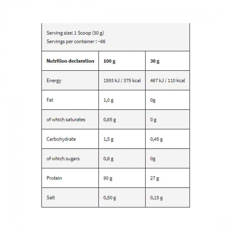 Изолят сывороточного протеина (из молока), анти-слеживающийся агент, натуральные ароматизаторы, регулятор кислотности, натуральные красители, соль, подсластители (ацесульфам К, сукралоза).