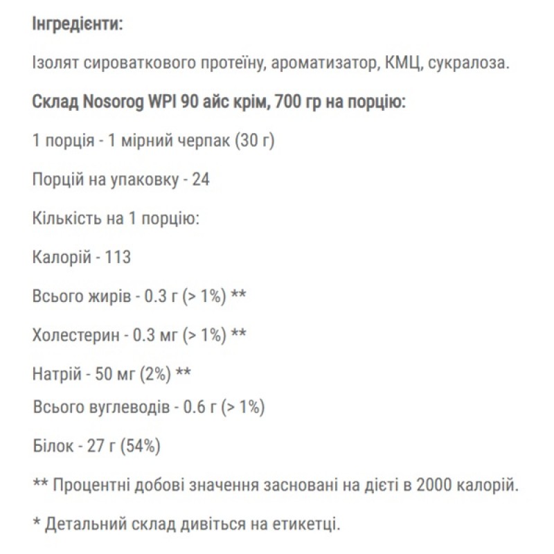 Nosorog WPI 90, 700 гр - это отличный выбор варианта изолята сывороточного протеина (WPI) Премиум уровня. Для многих потребителей протеина WPI - лучший вариант среди всех различных сывороточных протеинов. WPI - самый плотный источник белка, содержащий не менее 90% белка в каждой порции. Nosorog WPI 90, 700 гр - лучший выбор среди множества WPI на рынке. Он сделан с использованием низкотемпературного процесса микро- и ультрафильтрации, который сохраняет природные пептиды и фракции, которые поддерживают иммунную функцию и общее состояние здоровья. Целых 24 грамма легкоусваемого протеина на мерную ложку будут максимально быстро поступать в Ваш организм. Практически не содержит лактозы и углеводов, обезжирен и легко смешивается, так как он инстантизирован.