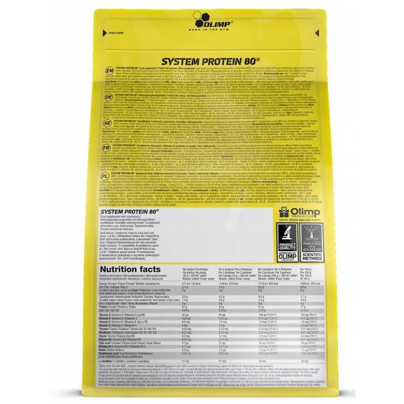 Композиция System Protein 80 основана на концентрате белка молочной сыворотки, белка куриного яйца и эксклюзивного изолята белка молочной сыворотки.