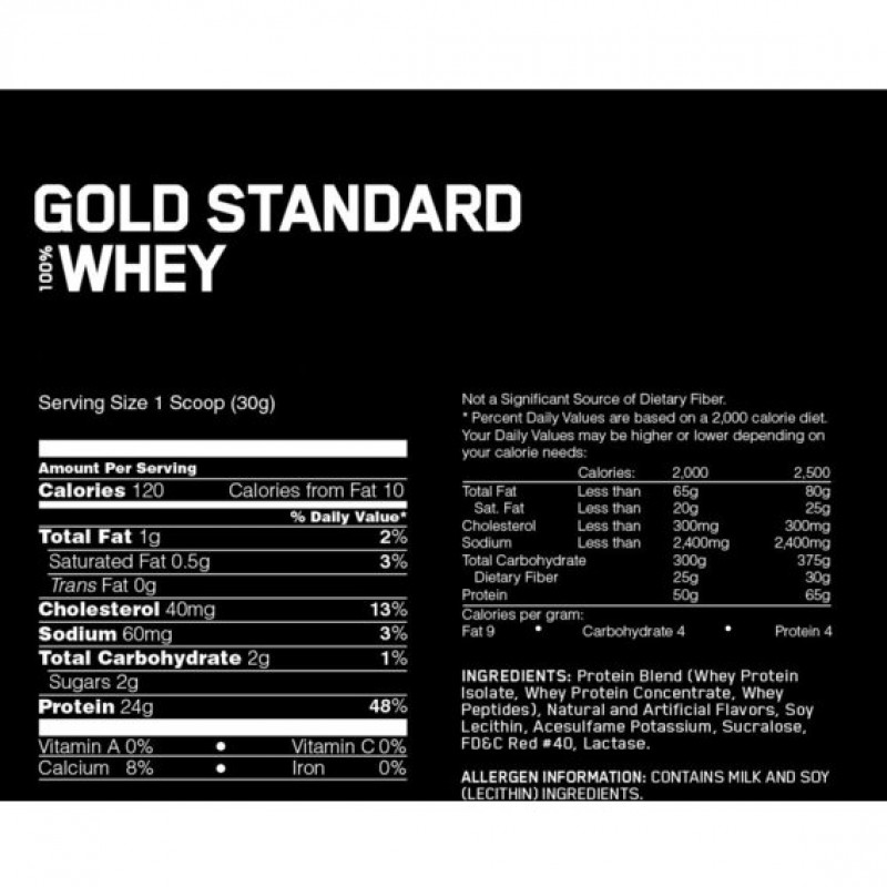 Каждая порция 100% Whey Gold Standard даст вам чистейший сывороточный протеин, минимум жиров, минимум холестерина и лактозы.Высокое содержание протеина в каждой порции 100% Whey Gold Standard (24 грамма).