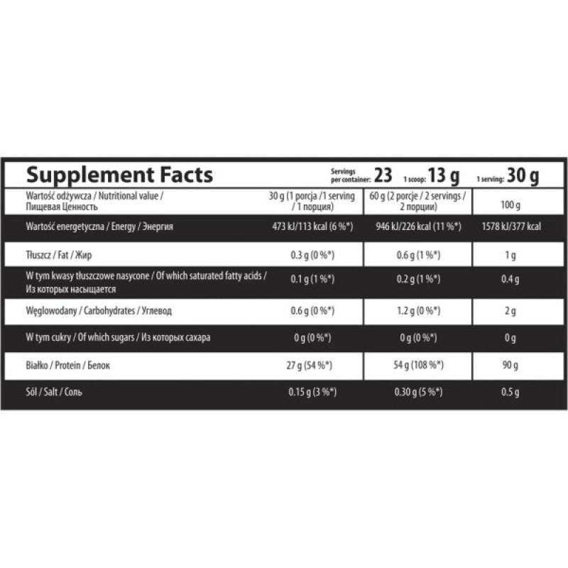 Whey Protein Isolate OstroVit - это изолят сывороточного белка высочайшего качества, который считается самым ценным источником белка, используемого в спорте. Препарат получают микрофильтрацией поперечного потока, который протекает при низкой температуре. Идеально подходит как для наращивания мышечной массы, так и для снижения жировых отложений. Препарат, содержит 90% легкоусвояемого животного белка и модельный профиль аминокислот, необходимых для наращивания мышечной массы. Характеризуется небольшим количеством жира, лактозы и углеводов. Использование добавки эффективно при снижении веса, поскольку стимулирует сжигание жира, особенно в области живота. Это также эффективная добавка к потребностям белка при использовании низкокалорийных диет. Изолят сывороточного белка считается основой диеты каждого спортсмена. Особенно рекомендуется в силовых видах спорта, бодибилдинге и фитнесе.
