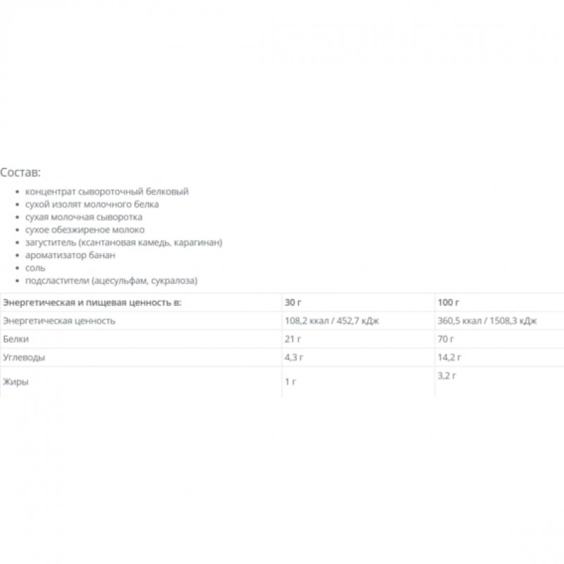 Протеин на основе быстрорастворимого концентрата молочной сыворотки имеет высокую биологическую активность и является источником аминокислот в оптимальном для усвоения соотношении.