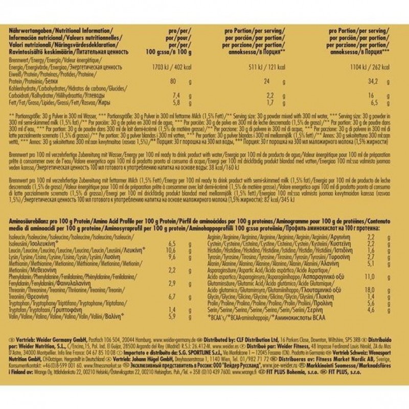 Состав одной порции Gold Whey Weider (30 грамм):