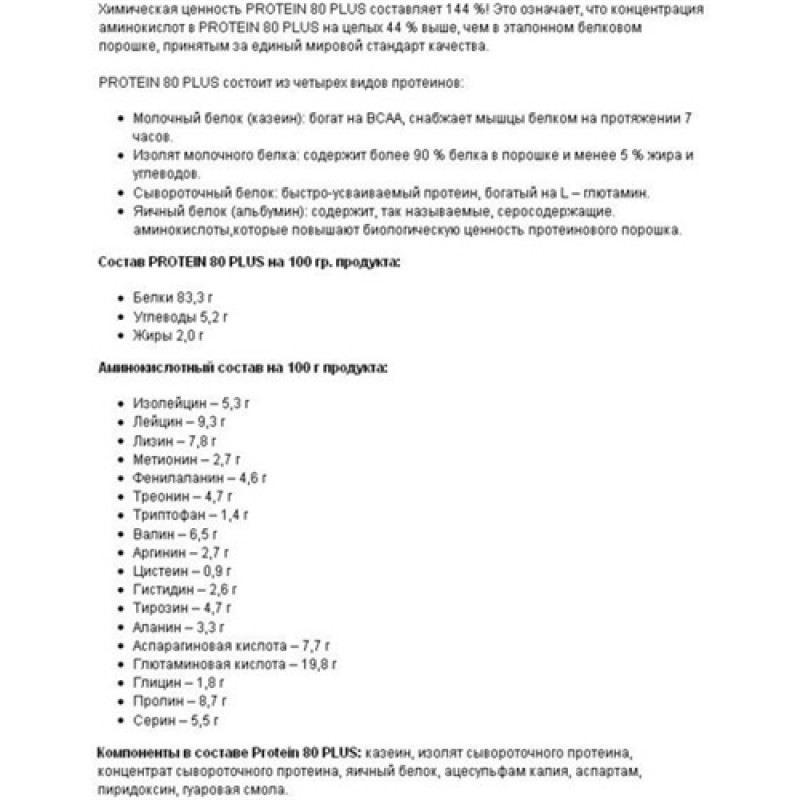 Типы белков в Protein 80 Plus Weider