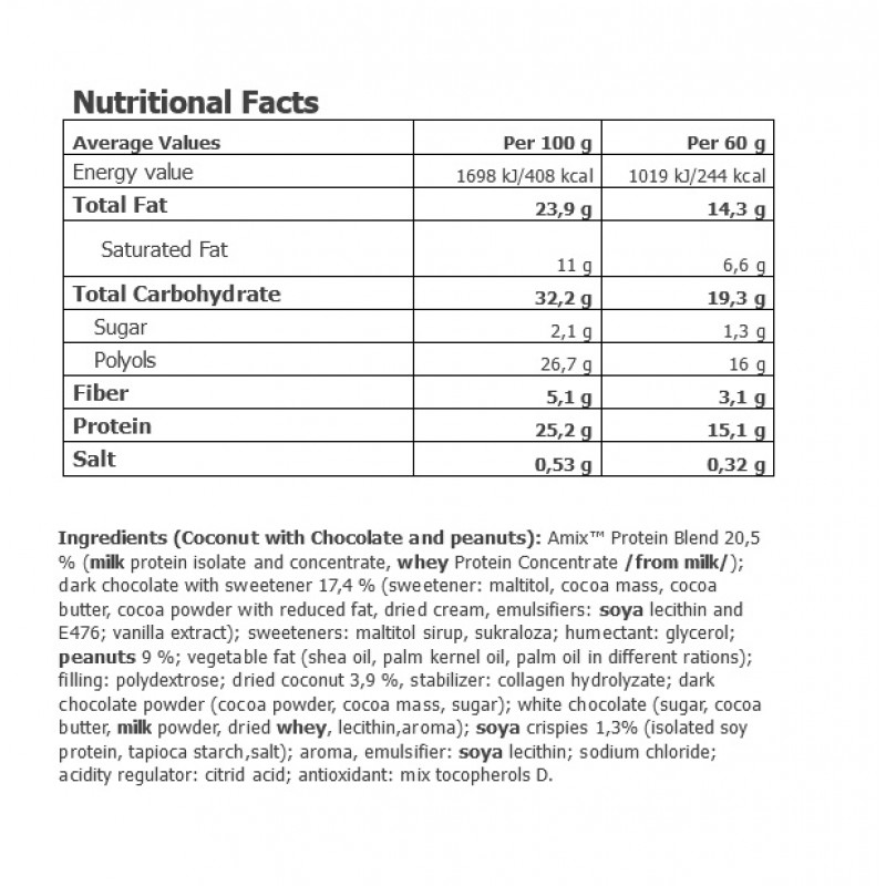 Протеиновый батончик Amix в своем составе имеет высокое содержание белка и низкое содержанием сахара является хорошим выбором для тех, кто регулярно и упорно тренируется, чтобы добиться спортивной формы тела и физической формы. TIGGER CRUNCHY PROTEIN BAR идеально подходит для активных людей, любителей фитнеса и спортсменов, которые стремятся включить здоровую альтернативу в свой ежедневный рацион, позаботиться о мышечной массе, увеличить потребление белка и сохранить здоровье тела.