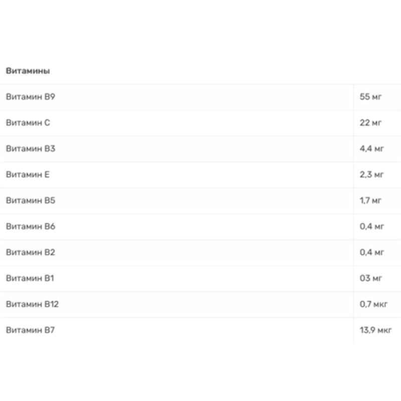 - Витамин В7 13,9 мкг