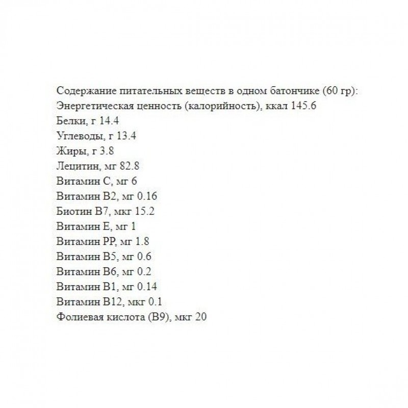 Кушать 1-3 батончика в день, между приемами пищи, в качестве дополнительного источника белка.
