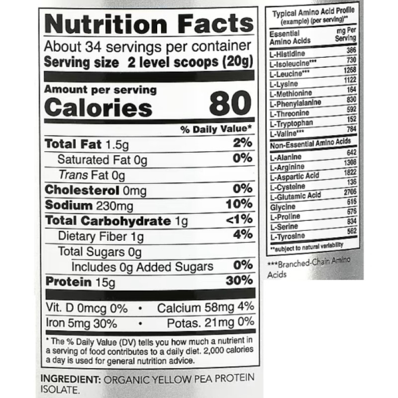 Протеин из гороха Now Foods является отличным источником белка для спортсменов, бодибилдеров, людей, придерживающихся кето-диеты, а также обеспечит восполнение белка в организме для веганов, вегетарианцев, людей, не употребляющих лактозу и глютен, и тех, у кого возникают проблемы с перевариванием других видов белка. Чистый порошок содержит изолят белка желтого гороха без вкуса и хорошо смешивается с любим напитком.